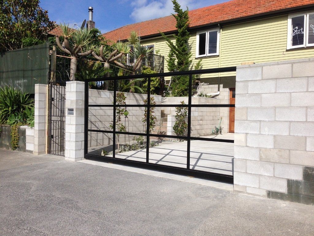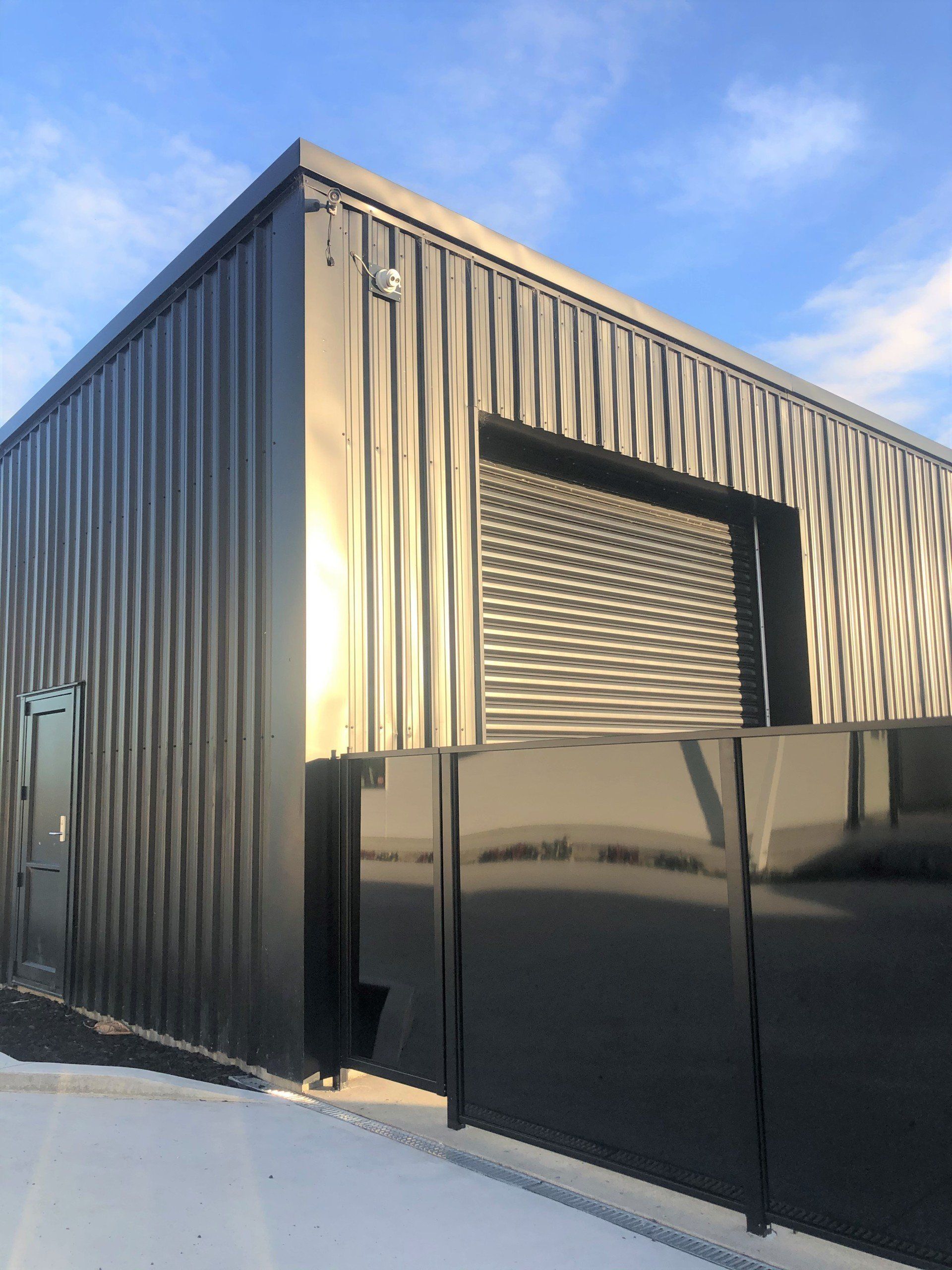 Double-width to allow for vehicle access. Glass & aluminium in Avon style